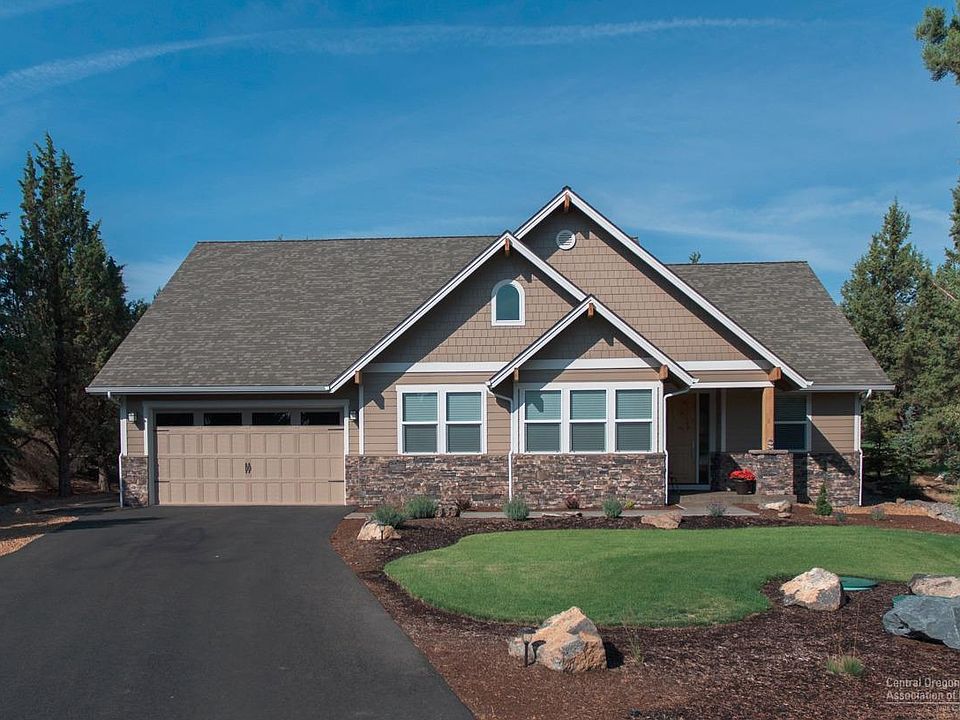 Better-than-new, Custom NW Style built in 2016 by WeBe Homes. 2026 sq ft but lives MUCH larger. 3BR,2BA w/Office. Wonderful great room design packed with high-end finishes. Hickory flrs in great room, kitchen & hallways. Chefs kitchen w/GE Induction range & oven w/warming drawer, slab granite, knotty alder cabinets. Whole-house water purification/softener system. Custom juniper mantle on floor to ceiling stone gas fireplace. Covered patio & filtered golf course view. Tandem 3-car garage w/built-in shelving