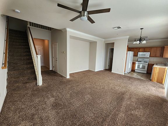 Beautiful 3 bedroom 2.5 bath with 2 car garage and small private back patio area. Retractable awning in backyard for shade. Ceiling fans throughout. Large master bath with walk in closet.