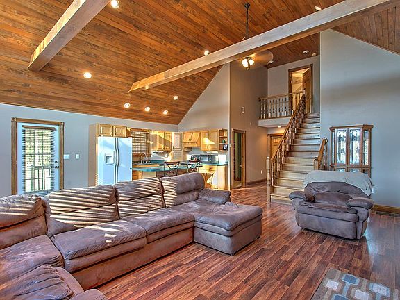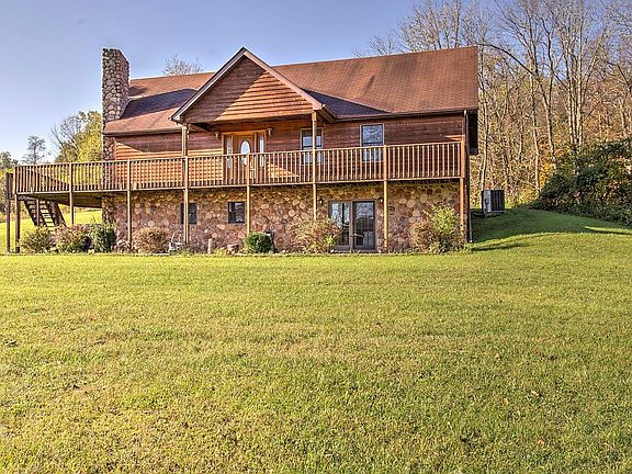 Country oasis situated hillside on almost 14 acres! This gorgeous wood sided home features vaulted wood beam ceilings, open floor plan, stone fireplace, plenty of natural light, & large porch to enjoy the beautiful views! Master suite loft, possible 4th. BR, & full finished walkout basement! If you're looking for privacy, look no further!