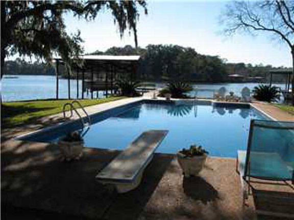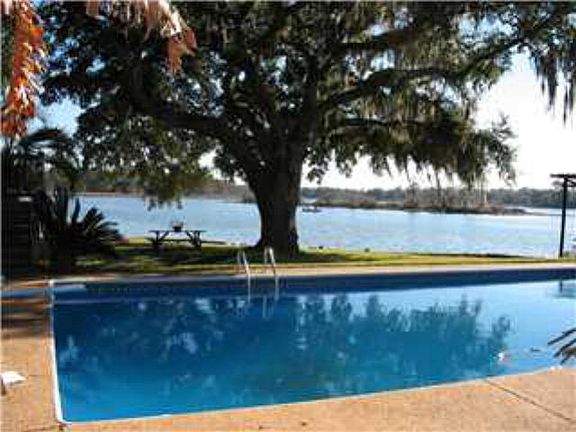 Incredible setting on the river with water on 2 sides of the property. 3 BR/2 BA upstairs with over 2100 sqft & over 900 sqft downstairs finished, heated & cooled with a full bath. This house has a boat launch, boat lift, boat pier, and pool. The river gently wraps around the property on 2 sides creating a beautiful setting with Spanish moss blowing in the wind. Listing agent is related to seller.