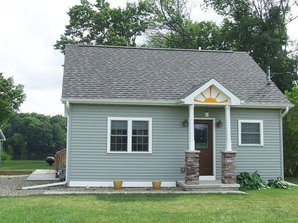 Perfect retreat on the St. Joseph River! All new in 2013 (except 2 basement walls). White kitchen cabinetry and dark elm wood floors through eating area. Center island, granite counters and tile backsplash. Sliding glass door leads to the wood deck. Main floor bedroom and full bath has over sized tub with ceramic tile surround. Upstairs is a second full bath, bedroom with sitting area and possible 3rd bedroom. Full 8' basement is dry for ample storage and has laundry hook-up. 12 x 12 storage she d has power and wood floor. 70' of wide river frontage has wood deck, dock, seawall and buried power. 2 x 6 exterior construction has blown cellulose keeping this home very energy efficient. Sellers say that their natural gas bill run $35 per month with the temp set at 55. Appliances are negotiable.