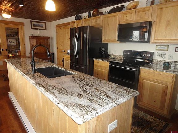 Lovely, hand-crafted new interior. Quiet Private location, massive remodel, amazing location with expansive views of the Grand Mesa and down valley. Two miles from town, close to everything you want to do, skiing, golf etc. Property has 28 fruit and nut trees. 19 verified species of birds surround the home in the summer. Home has all new windows, doors, roof, kitchen, floors walls, and exterior siding. Custom interior; all new ceilings; wood aspen, pine, and tin replica. Aspen wood walls with Pine doors and cedar trim. Hardwood maple flooring, tile and carpet floors. New light fixtures, comfort height toilets, new bathtubs, granite countertops, hickory cabinets. Each bedroom has an adjoining bathroom. Primary Bedroom and guest bedroom have air condition units. Some water rights come with the land, sellers are also including an additional 50 shares of Leon Lake water. There are three sources of water for this property. Exterior buildings include, Red Barn, a Workshop, Quonset hut, 2 storage sheds, new wooden frame green house, tree playhouse. Owners have grazed the pasture, so horses and cattle or sheep would work well. No restrictions that seller knows of regarding types of animals. Only 30 miles to the Powder Horn Ski area, and over 300 lakes and reservoirs on the Grand Mesa.