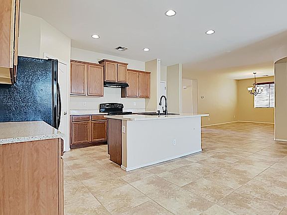 Minimum credit 650. Very nice single-level home in Buckeye. Taylor Morrison - Amber floor plan has 1826 sqft with 3 Bedrooms, 2 Baths, and a Spacious Great room. The open concept kitchen is complete with center island, breakfast bar, staggered cabinetry, pantry and matching black appliances included. The XXL formal dining room completes the open concept of the main living area, with tile throughout the home and carpet in the bedrooms and great room. Split design has the Master suite off main living area, with large walk-in closet, ceiling fan & picture window. The en-suite bathroom has a double sink vanity and separate garden tub & shower. Large laundry room with window provides lots of light. Backyard features a covered patio with easy maintenance desert landscaping. $1700 security deposit, $400 cleaning deposit, $20 mthly admin fee. $400 pet fee IF the owner approves your one small dog. Come see it! Tenant responsible for providing proof of tenant insurance.