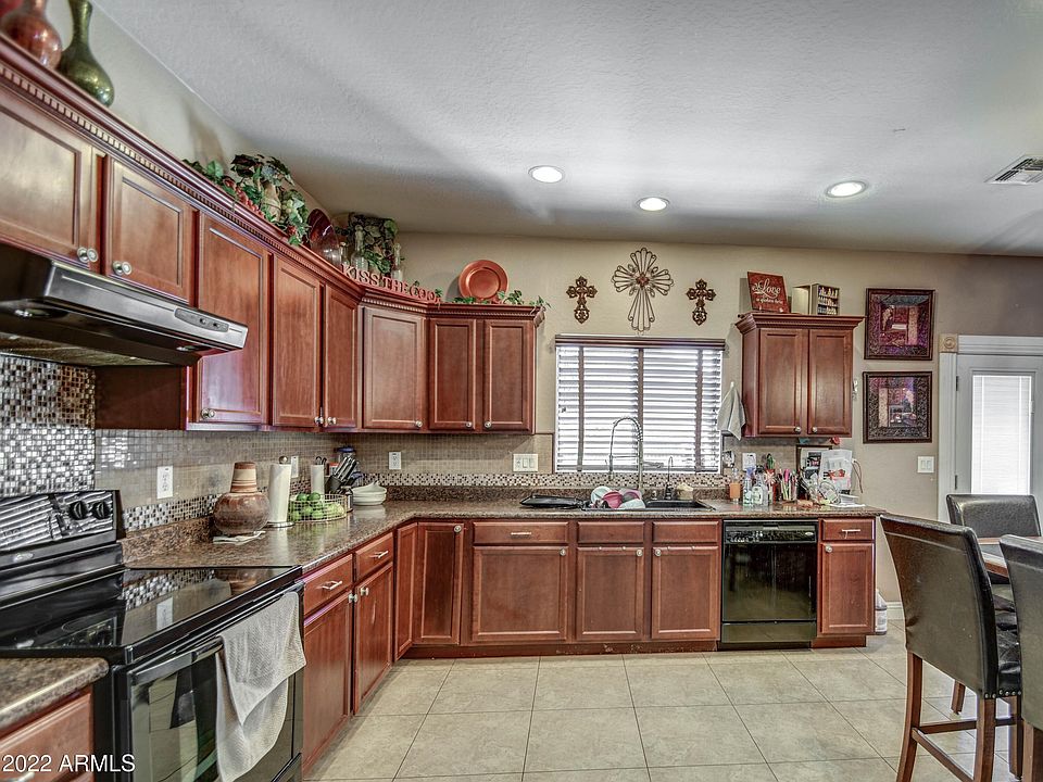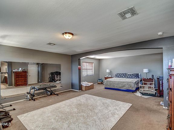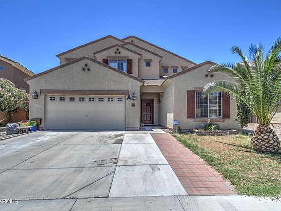 Welcome home to Riata West in Buckeye! This beautiful home has an open floorplan perfect for any family! 5 bedrooms, 3 full baths, 2929 SF with bedroom on main floor! Formal living room & dining room with soaring ceilings & 20'' tile floors. Gourmet kitchen features black appliances, custom mosaic tile backsplash, plenty of cabinets & walk-in pantry! Spacious family room w/surround sound opens to kitchen with French doors leading outside! Upstairs you will find larger secondary bedrooms with a truly massive Master Suite complete with separate garden tub/shower, sitting room & roomy walk-in closet. 3 car Tandem garage w/extended driveway, RV Gate and large backyard just waiting for one lucky buyer to make their own! This home has all the space you need and more! You won't want to miss it!