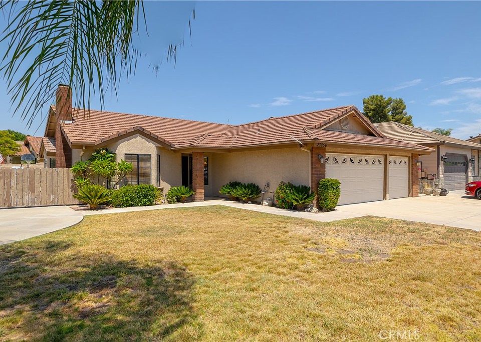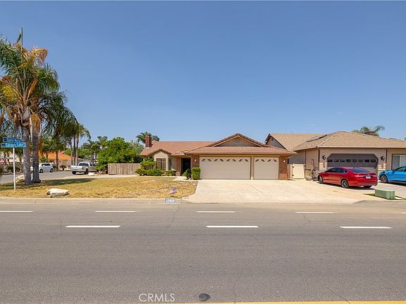 Gated RV Parking with electrical and clean out, and Boat parking pad, along with 3 car garage and flat driveway. If you have toys, this is the place for you! The very large backyard is enclosed with block wall fencing for great privacy and maintenance free. Back yard offers 3 different concrete patio areas, as well as covered patio area for exterior entertaining and dining. As you enter this single level home, you are welcomed with a very large great room centered by a wood burning fireplace for those chilly nights. The dining room area is large and open to the very good sized kitchen with tons of counter space. Kitchen offers tile counters, dishwasher, oven/microwave as well as large walk in pantry. The flooring throughout the main living areas of the home is newer laminate and the walls have been painted with decorator gray colors. All 3 of the bedrooms are very generous in size, the primary suite has large slider to rear yard, as well as dual vanity and sinks. Shower and water closet enclosure.