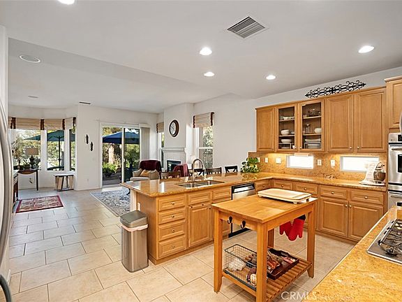 Welcome to your dream residence in the prestigious Trilogy Community, an exclusive 55+ resort-style haven. This meticulously customized Chaparral model home spans 2,253 square feet of luxury living, perfectly positioned along the Glen Ivy Golf courses 14th hole, expertly designed by Ted Robinson, offering awe-inspiring panoramic golf course and mountain views. Step inside this exquisite single-story abode and be greeted by a thoughtfully designed floor plan. The formal living and dining rooms seamlessly blend with an inviting great room, where panoramic views and a charming fireplace create an atmosphere of warmth and relaxation. Two generously sized bedrooms with en-suite bathrooms, along with an additional den/office space providing versatility. The heart of this home lies in its immaculate gourmet kitchen, an entertainer's delight. The expansive granite island, complete with breakfast bar, is complemented by updated double ovens, microwave, and sleek range top for culinary enthusiasts. Spacious Main Suite with Walk-in Closet, his & her Main bathroom Vanities. An open backyard patio showcasing captivating views of the golf course, creates a perfect setting for al fresco gatherings. This model comes complete with a three-car garage for optimal parking and storage solutions. Trilogy at Glen Ivy sets the standard for active adult, resort-style living, offering a fully equipped gym, indoor Olympic-sized pool, outdoor pool and spa, tennis and pickleball courts, bocce ball, an indoor track, and an amphitheater for concerts and community connection. Embrace the art of living well — seize this opportunity and experience the epitome of Trilogy luxury living.