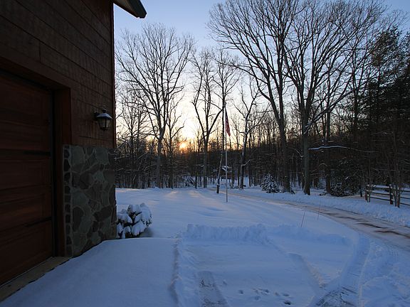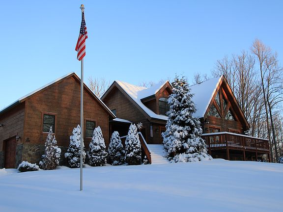 This is a log home, designed ny Heritage Log Homes, constructed from January 2007 to Dec 2007. Not a cheap log home, everything is custom built, maple floors, Hickory interior doors, granite counters, copper sinks, hand painted sinks in master bath, travertine marble stone floors in kitchen/foyer and master bath, stone fireplace in great room, also second fireplace in full finished basement. Extra large open loft upstairs over looking great room, two bedrooms upstairs with full customer baths, master suite on main level. Wrap around porch, gazebo, firepit and koi pond, blue stone patio, 2 out building sheds for yard equipment etc. Over iszed two car garage 30x20 ft., breezeway between house and garage. Customer light fixtures and accessories throughout. No expense was spared. All wood panel walls on main and upper level, no drywall.