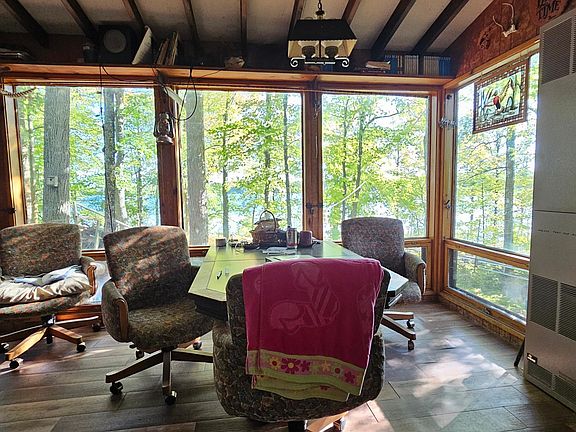Private and serene 30 acres with 900+ feet of lakeshore that has never been offered to the open market before. An outdoor enthusiasts paradise in the woods that borders state land as well. This secluded and untouched parcel of land boasts a seasonal cabin that sleeps up to 12 people, a large screened in porch overlooking the lake, fish cleaning area and two storage sheds. Abundant wildlife, privacy and serenity await you on this beautiful property.