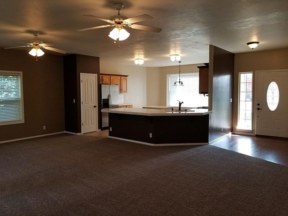 If you enjoy dining outside under the shade of a covered patio, this is the home for you. If you love fresh raspberries on your cereal in the summertime and summer apples for pies, we've got them. If you need space to park an extra vehicle or snowmobile trailer, the pull through space behind the 3rd garage bay can accommodate. Other benefits this clean, single level home offers are: Roomy Kitchen with Stainless Steel Appliances Refrigerator Included Pantry Dual Vanities in the Master Bathroom Large Soaker Tub Spacious Walk-in Master Closet Washer and Dryer Hook-ups Covered, North-Facing Back Patio Raspberry Garden Summer Apple Tree (makes great pies) Trailer Parking (No RV's or Tall Utility Trailers) Next to Gordon Harris Park and Playground Equipment Short Walk to Mountain View High School Easy Access to the Freeway No smoking or pets. Tenant to pay all utilities. (Landlord pays HOA fees, taxes and irrigation) Applicant's references will be checked. If found satisfactory, applicant will be sent a link to final application with $30 fee for credit and background check. Deposit of $1,7000 plus 1st and last month's rent due upon move-in. Lawn care and irrigation water is included in the rent. Tenant pays all utilities. No smoking or pets.