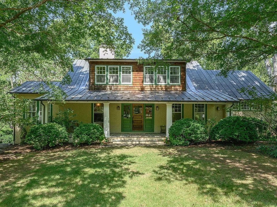 Pool and pool houseTile fireplaceFirst floor primary suiteSunlit dining roomPrivate porchStone walkwaysCopper roof