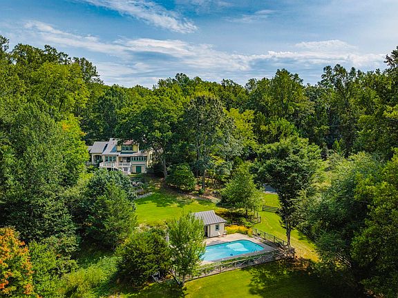 Wildwood is an exquisite example of an Arts and Craft Home maintaining the integrity of the period with 21st century improvements and additions. Built in 1917 with extensive oak woodwork defined by its emphasis on handcrafted simplicity, quality, and harmony with nature. The oak, quartersawn to highlight the straight grain, is used functionally and decoratively throughout the interior. The Built-in cabinetry highlights the joinery skills of the Arts and Crafts movement. A gracious entry opens to the living room with tile fireplace and sunlit dining room creating a flowing space. A dream kitchen and breakfast area are timeless. The Library/den has floor to ceiling bookcases and Blue Ridge Views. First Floor living is possible with the seamless addition of a first floor primary suite with private porch. The main house has 2 additional bedrooms & a 2nd floor primary bedroom, with a total of 3.5 baths. Delightful guest house/studio 2 full baths &versatile floorplan. The 5.6 Magical Acres have multiple porches, terraces, mahogany deck, stone walkways and walls, pool and pool house. There is a separate Garage and Garden shed, copper roof, generator, solar panels. Only minutes to Barracks Road and town. Past Foxfield on the right.