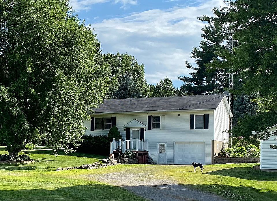 Call Sam at 6419198468 for a showing! Lovely, well-maintained home on paved road just 2 miles from town! This gem is on 1.1 acres with a variety of fruit trees and 3 raised garden beds. The layout on the main level includes an ample living room with lots of natural light and a newer wood stove for cozy winter days. The living room is open to the ample kitchen/dining area (all appliances included in sale). From the dining area, step out to the maintenance-free back deck ~ a great place to grill, entertain, or just enjoy a little quiet time. Also on the main level are two bedrooms, plus an office/reading nook, and a newly remodeled (2022) bathroom with tile floor, tub/shower and conveniently located laundry. The lower level includes a convenient coat/mud room entry (from the attached garage), a great tv/ hang-out space, an extra bedroom, and another completely remodeled bathroom (also 2022) with tile floor and walk-in shower! With a one-car attached garage, a two-car detached garage/workshop, and a separate shed, there is plenty of storage space for everything!