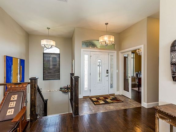 Absolute beautiful home located at The Point subdivision. This is a must see home. Features 5 bedrooms, 3.5 baths with a near completed finished basement that hosts a pool room and an entertainment room with surround sound. This is a beautiful custom built home with open floor plan, beautiful granite counter tops, master bedroom has an amazing walk in shower with very large master closet, high counter with double sinks. Amazing master suite with huge walk in shower. Walk out to a covered patio downstairs with amazing views of the Ruby View Golf Course and the city below. Patio includes gas fireplace. Carpet throughout downstairs, upstairs tile and hardwood floors. Lots of storage.