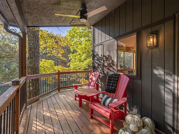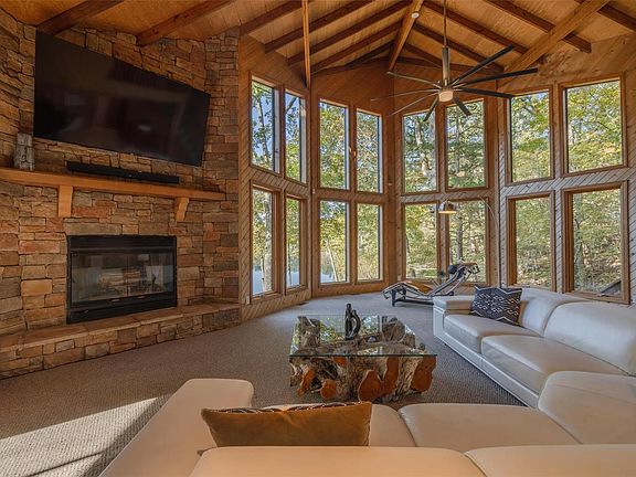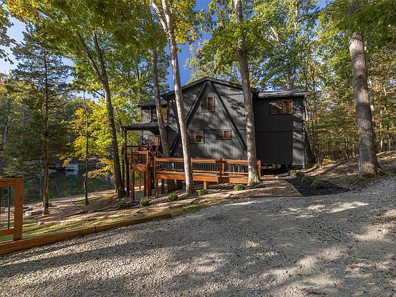 This stunning, fully furnished 4 bed and 2 bath lakefront chalet offers the perfect getaway. Set on a serene 20-acre lake and boasting a private lakeside dock, sandy beach, and cozy firepit for those relaxing evenings by the water. In September, the exterior was refreshed with a new roof and fresh paint, ensuring it’s in pristine condition. A storm shelter adds safety, while the large storage shed with electricity provides ample space for storing a golf cart or other gear. Inside, the vaulted great room showcases breathtaking views of the lake and surrounding forest, creating an inviting and peaceful atmosphere. The kitchen (with newly installed granite counters and appliances) features an oversized breakfast bar. The four spacious bedrooms provide plenty of room for family and guests. Entertain inside or out with room for any sized crowd! Ready to move in, this lakefront retreat offers the ultimate blend of comfort and outdoor adventure, waiting just for you!