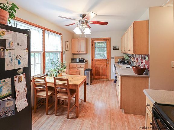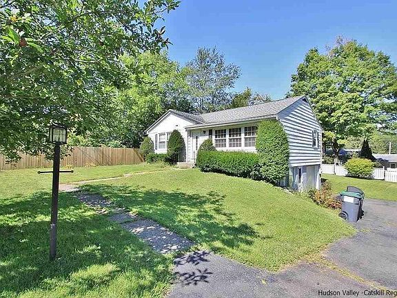 This lovingly cared for Kingston Ranch is looking for a new family to embrace! With 3 bedrooms, 1.5 bathrooms, a full basement and 1005 square feet of living space, this home has lots to offer. The main level is a breath of fresh air, flooding with an abundance of natural light and graced with oak hardwood floors and fresh paint. The eat in kitchen is perfectly situated with Corian countertops, newer cabinetry, and a walk out to a private patio for outdoor dining. Offering a great entertainment layout, the living room is situated just steps from the kitchen with plenty of space for company, while still cozy. Down the hall you will find a spacious full bathroom, and two bedrooms, currently used as an office and guest bedroom. To complete the layout, on the opposite end of the house sits the master suite and its own private half bath, and large closet for maximum convenience. Along the way, don’t miss the small original details, like the cute built in linen closet! The lower level will not disappoint with a large one car garage and an impressive partially finished walk out basement. This space has endless opportunities for an at home gym, office, or just a cool hangout! Home features include, a new outdoor fence, central ac, +/-2 yr. old 200-amp electric service and much more. Just a few minutes to the public Rail Trail and centrally located between Stone Ridge, Woodstock, and Kingston. Don’t miss out on this turn key space located in the Rondout Valley School District.