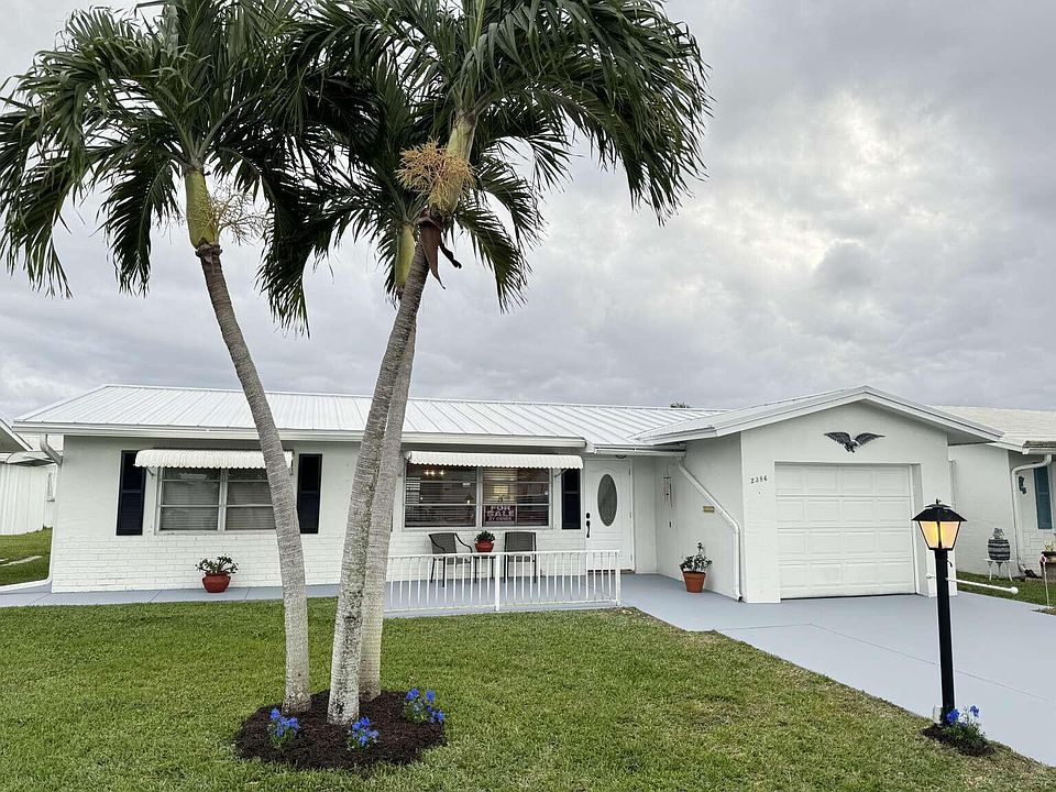 Beautiful single family home with curb appeal in desired Palm Beach Leisureville with golf course,3 clubhouses/pools and many more amenities in Boynton Beach, 10 minutes from the beach, 5 minutes from tons of restaurant/shopping,30 minutes to Palm Beach International Airport and Beautiful Palm Beach. Ready for you to enjoy a resort style lifestyle in tropical South Florida. NEW METAL ROOF 2023,NEW KITCHEN with Quartz Countertops and Shaker Cabinets,Dishwasher, Range, and Microwave 2023,Updated bathrooms 2023, All new A/C duct work throughout home 2020, New A/C 2018, New Water Heater 2018, New Electrical Panel 2017. Fresh paint interior of home, garage, driveway and garage floor. REC Lease Paid in full. HOA $175.00 Monthly,includes community amenities,lawn maintenance & exterior painting.