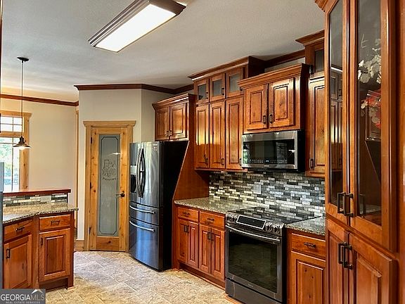 Your 4 bedroom, 2.5 bath Craftsman Pike County Home awaits you! This beauty sits on 12 acres with a stocked pond, beautifully landscaped yard and 36x85 4 bay garage. Family room with fireplace and beautiful beamed Cathedral Ceiling. Separate dining room with Coffered Ceiling. Primary bedroom on the main. Primary bath with double vanity, separate tub, shower, and walk in closet. Kitchen with solid surface countertops, stainless steel appliances, and large pantry. Breakfast bar and area. Large bonus room upstairs. Beautiful porch with fireplace, and jacuzzi over looking inground pool and pond. Also, there is an additional lot of 9.61 acres next door for sale, See GAMLS 10624586. Don't let this one slip away!