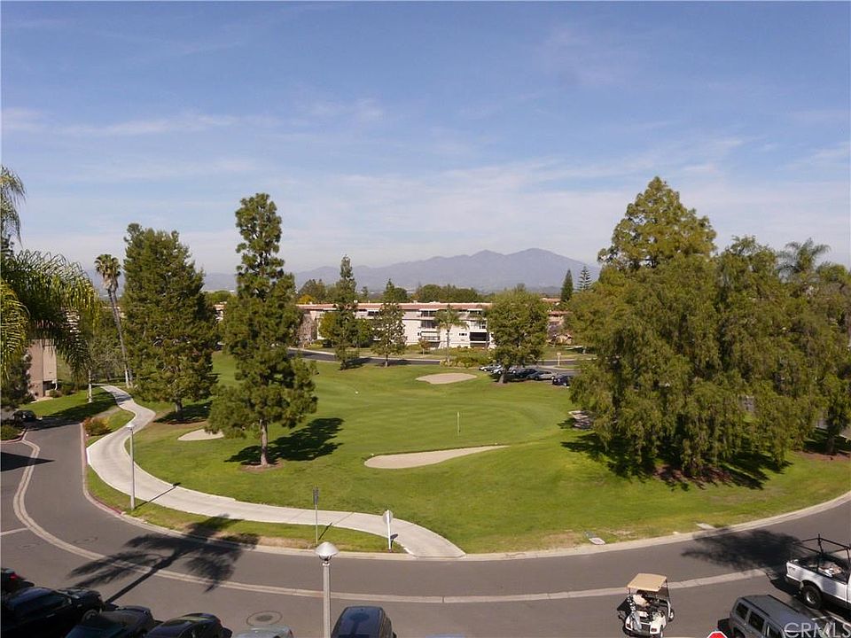 55+ Community!! One of the largest 1 BD floor plans in Laguna Woods. Enjoy a beautiful eastern view looking over the 8th hole towards Saddleback Mountain. Third floor condo with subterranean parking and elevator. New carpeting, freshly painted. Spacious living room with dual sliding glass doors and separate den area with closet space. Bright kitchen features dishwasher and microwave and window over the sink for lots of natural light. Wood laminate floors in entry way and kitchen, plantation shutters throughout, mirrored closet doors and double door entry. Great condo in the heart of Laguna Woods located in gate 5/6 on the far west side close to Clubhouse 4 with its arts/craft workroom /classes and pool. As a lessee, you'll enjoy all the amenities of Laguna Woods including $11 golf, tennis, horse back riding stables, pools, gyms, library, theater, clubhouses, over 200 social clubs + more!! Convenient location close to freeway but still just a short drive to Laguna Beach. Free bus service in and around the community and many golf cart accessible pathways around Laguna Woods and to shopping areas.