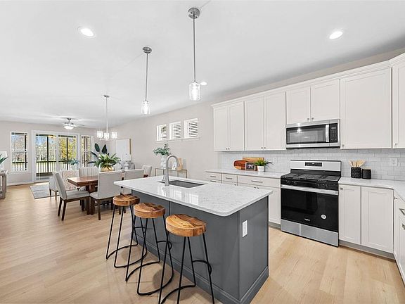 MOVE IN READY! Brand New, 3 BD, 2 BA, free-standing villa by Fischer and Frichtel in the beautiful Windswept Farm neighborhood. This unique opportunity offers 3 BDRMS ON THE MAIN FLOOR! This low maint villa showcases 1,700 s/f of open, smart living space. The ext is exquisite w/brick, shake accent siding, front door sidelight, carriage style garage door w/opener, 30 yr arch shingles, irrig system, prof landscape, 14x13 screened composite deck and 14x13 covered patio. Enjoy a carefree lifestyle with HOA maintained grounds (per ind). Features inc LVP flrs, 9 ft clngs, on-trend 42 inch cab w/crown and hardware, soft close feature, tile b-splash, SS appl, island w/seating bar, quartz c-tops, gas stove, micro, D/W, main flr Laundry, raised height dbl bowl vanities in the Master Bath, shower w/bench seat, W/I closet, R/I bath and more. This 174 AC master-planned community is full of onsite amenities, inc lakes, a community pavilion, community gardens and common ground. Limited Opportunity! Location: Detached