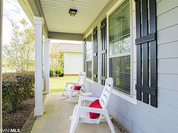 Easy access to Mobile and I-10, Daphne School District, community pool, on corner lot with a great open floor plan. This 3/2 home has a 2 car detached garage with covered walkway into back screened porch and fenced in yard. This home has 9' ceilings, great open floor plan that flows from the kitchen to living room with trey ceiling. Kitchen has rich dark cabinets, light granite counter tops with stainless steel appliances and the refrigerator stays! Granite counters in bathrooms, tile in wet areas, carpet in bedrooms. Large master with garden tub and separate shower. Make your appointment today because this one will NOT be on the market for long!