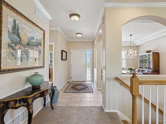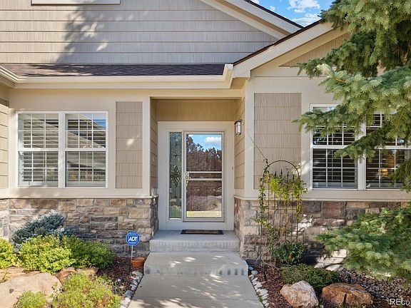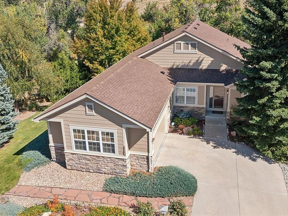 Get ready to enjoy your new lifestyle in this incredible Ranch home located on a premium lot in Heritage Eagle Bend 45+ community! Best location in HEB! You're on a dead end street with .56 acres backing to open space with a creek & an big side yard boasting colorful flower beds, mature trees. Wake up to gorgeous views, the sound of birdsong and occasional wildlife sightings. You'll love the open concept floor plan with picture windows showcasing the natural surroundings. It feels like you're living in a treetop! This is a fantastic home for entertaining! The beautiful chef kitchen has a long slab Granite breakfast bar for serving guests, Granite counters, eat-in nook, Hickory cabinets, pantry, pull-out shelves & lots of storage. From here step onto the deck fitted with motorized awning--a private space to dine al fresco. The living room is a great place to unwind taking in the cozy stone fireplace. Enjoy more amazing views in the main floor Primary bedroom featuring a luxurious ensuite 5-pc bath with jetted soaking tub, custom shower, Granite counters, dual sinks & built-in vanity, large custom walk-in closet. On the main you also have a formal dining room, private office, 2nd bedroom, full bath & laundry. Custom window treatments throughout & Scottish leaded glass entry door panel. Head down to the walkout basement to find a spacious rec/entertainment room, wet bar/wine cooler, bedroom w/ walk-in closet, full bath & huge storage/utility room with built-in shelving. From here step out to the patio. The oversized 3 car garage is finished, fitted with cabinets & ceiling fans. Home exterior painted 2023, partial roof replaced 2023. Welcome to an impeccable gated community, its course described by Golf Digest as “one of the best places to play in Colorado.” Enjoy an active lifestyle with great amenities--a top rated golf course, clubhouse, restaurant, fitness center, pools, tennis/bocce/pickle ball & miles of walking trails. So many reasons to make this home yours!