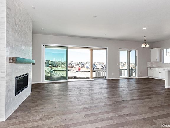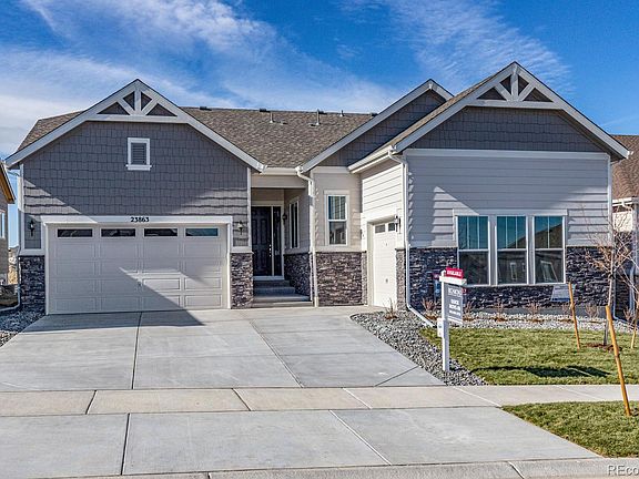 BRAND NEW HOME! Located just minutes from the Inspiration Club and Pathfinder Park, this ranch-style home greets you with PROFESSIONAL LANDSCAPING, striking stone accents and a charming covered entry. Inside, you'll find a study with FRENCH DOORS and an expansive great room featuring a FLOOR TO CEILING FIREPLACE with MANTLE. Large MULTI-SLIDE GLASS DOORS lead onto a relaxing covered patio. You'll also appreciate an open dining room and a gourmet kitchen featuring STAINLESS STEEL APPLIANCES including a DOUBLE OVEN, GAS STOVE, MICROWAVE, DISHWASHER, a large center island and walk-in pantry. Also included are extensive MAPLE CABINETS in WHITE ICING and QUARTZ COUNTERTOPS. An elegant master suite boasts a beautiful bay window, immense walk-in closet and deluxe bath with QUARTZ COUNTERTOPS and MAPLE CABINETS in WHITE ICING. Separated from two additional bedrooms for privacy. UPGRADED HARDWOOD FLOORING throughout and UPGRADED CARPET in bedrooms with HOLLYWOOD WRAP ON STAIRS. AIR CONDITIONING, an unfinished basement and 3-car garage complete the home. The Inspiration neighborhood was named 2019's Community of the Year by the Home Builders Association. The community includes 11 miles of trails to explore and enjoy Colorado nature. This home is located in notable Douglas County schools and features master-planned amenities such as a clubhouse, community pool with splash pad, parks and playgrounds, trails and year-long calendar of events such as outdoor activities, concerts and more all within the community. As a resident, you'll enjoy easy access to E-470 and all the restaurants, art, and entertainment Parker Road has to offer.