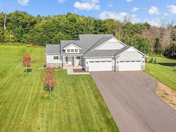 2021 built beautifully finished home with 4 bdrms, 3 baths, a 4 car finished garage, lawn irrigation system, & deeded lake access on Eagle Lake with beach & shared dock! Beautiful kitchen boasts white cabinetry & quartz countertops. Large windows allow for abundant natural light. Convenient main flr laundry/mud rm. Upstairs is primary bdrm suite featuring a walk in closet & private bath with separate shower & soaking tub. 2 more bdrms & a full bathroom complete this level. The 3rd level houses the 4th bdrm & 3rd bath plus a very large family rm with gas fireplace with shiplap surround. This level walks out to the big, beautiful back yard. The 4th level is ready to finish to add instant equity. All of this plus beach & dock access within easy walking distance on fully recreational Eagle Lake. Shared well & septic so no city water & sewer bill. This is your next home!