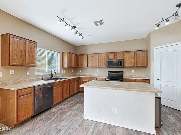 Welcome to your spacious 5 bedroom, 3 bath home with almost 3,000 square feet of living space! The low maintenance front desert landscaping adds to the curb appeal of this home. As you enter, you'll be welcomed dramatic ceilings and spacious formal living & dining. The open kitchen has plenty of storage, large island, maple cabinets, all black appliances, and breakfast bar. New wood-like tile floors and new carpet throughout.. The formal living and dining room offer plenty of space for hosting dinners and gatherings. The large family room is perfect for relaxing and watching movies with loved ones.