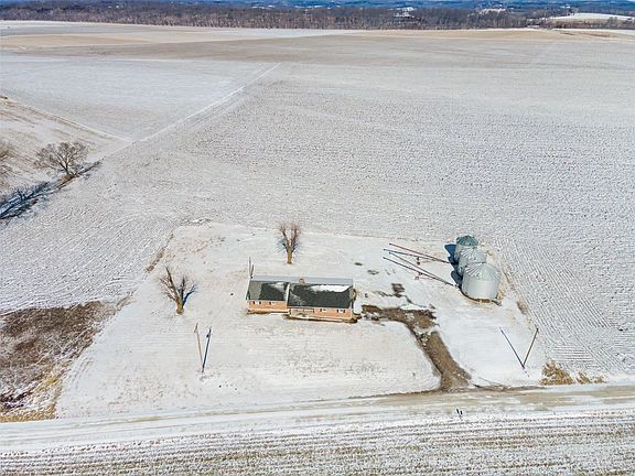 Offering large bedrooms, a fireplace and so much peace and quiet, this property is a homesteaders dream! The three grain bins generate income for the property through a neighbor who is a long term renter of the bins. While well maintained, the home is ready have your choice of style brought in.