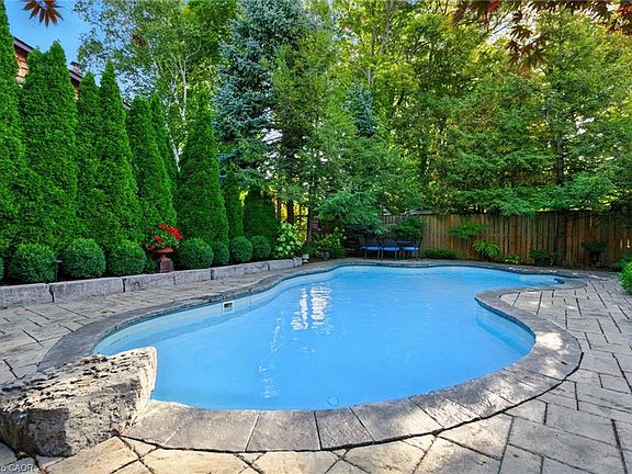 Welcome to this beautifully renovated home in one of Burlington’s most established and family-friendly neighbourhoods! Ideally located near parks, shopping, and quick highway access, this stunning 2-storey residence has been thoughtfully redesigned with quality finishes and attention to detail. The open-concept main floor showcases a modern kitchen with gas cooktop, double wall oven, large windows, and island seating that flows seamlessly into the dining and living rooms, perfect for everyday living and entertaining. A versatile bonus room on the main level, currently a TV lounge, could serve as a home office, playroom, or even a main-floor bedroom. Upstairs, brand-new carpeting leads to four spacious bedrooms. The primary retreat offers two closets (one walk-in) and a beautifully updated 4-piece ensuite, while the updated main bath features a large glass shower. The fully finished lower level includes new carpeting, a games area with pool table, and a cozy rec room for movie or sports nights. Step outside to your private backyard paradise! The heated inground pool is surrounded by mature trees, lush gardens, and professional landscaping for complete privacy. An expansive deck offers multiple seating areas, a covered lounge with gas fire feature, gas BBQ hookup, and ambient lighting, perfect for day or night enjoyment. This exceptional property combines comfort, style, and outdoor luxury in the heart of Brant Hills.