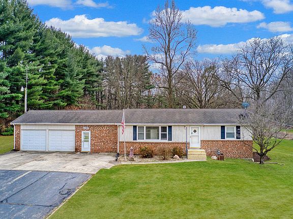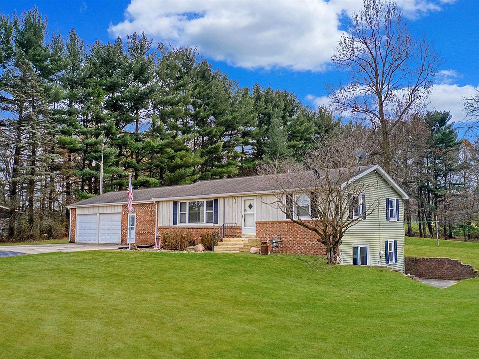 Come take look at this walkout ranch resting on three acres complete with mature trees and your very own pond! Once inside you’ll appreciate the new flooring throughout the home and fall in love with the views out your living room window of the picturesque horse farm across the street. The large, sunlit living room has plenty of space for your loved ones to gather during the holidays. Step into the kitchen and enjoy the beautiful views of your backyard while preparing your meals. Enjoy displaying your favorite pieces in the built in china cabinet. Down the hallway are two bedrooms, a full bathroom, and a linen closet. Right off the heated two car garage is the laundry room with plenty of storage for coats and boots, as well as a half bathroom. The space continues as you head downstairs to the large family room - turn it into a game room or snuggle up and watch a holiday movie together. This walkout basement provides a patio area that can be set up with string lights where you can relax in the evenings and enjoy the sunsets. Two additional bedrooms and a full bathroom in the lower level add space for extra family members or guests. In addition, this home offers tons of storage, including a pantry in the kitchen and an additional huge pantry or storage closet just off the laundry room. A summer kitchen is offered in the garage to keep the heat outside during those warm summer days. Once outside you can gather around the firepit, have space for that garden you've always wanted, ice skate on your pond, or just relish the outdoors on your new acreage.