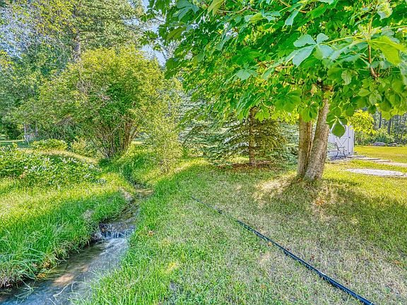 NO zoning, NO HOA, NO covenants! This beautiful home, sitting on a corner lot that is just under 2 acres, includes 6 bedrooms, 3 bathrooms, and has just over 3,000 square feet. This home also offers: large bedrooms, beautiful updated tile flooring throughout, updated bathrooms, new fridge, new water softener, new furnace with a heat pump, Central A/C, a wood stove, single-level living and an open floor plan. The main-floor primary suite includes an updated bathroom, walk in closet, and much more. The exterior features of this home include: a beautiful creek, a heated, detached 2 car garage with a wood stove and boiler heating system. It also includes mature landscaping, 3 apple tree, a hawthorne tree, a chestnut tree, 2 sheds, and a large, heated cement slab and covered porch making it