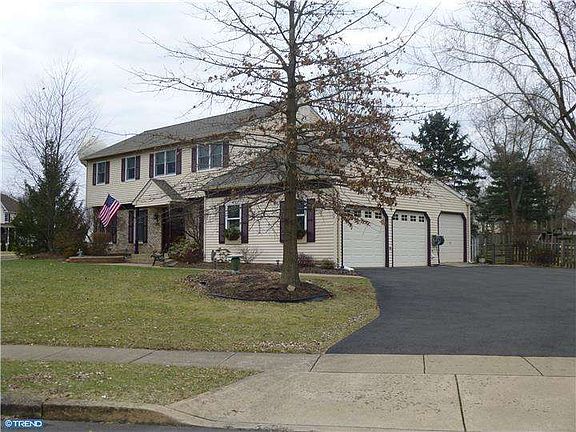 Stunning Traditional Colonial situated on a beautiful corner lot in Central Bucks SD. This home has been meticulously maintained and beautifully updated. The new Front entrance door welcomes you to the foyer with hardwood floors and leads to a spacious LR with tall windows to let the sun shine in. This leads to a formal dining Rm with walk-in bay window and chairrailing. The updated kitchen offers plenty of cabinets, granite countertops, hardwood floors, new oven/range and spacious breakfast area. The adjacent familyroom is the perfect spot on a cold winter night next to the beautiful brick fireplace. This room is accented with beautiful wood beams, tall windows and a sliding glass door to the deck. The laundry Rm & Powder Rm are conveniently located and access the interior door to the garage. A built in pet door will make your special pet very happy. The upper level offers a spacious Owners suite with large walk-in closet with organizers. The owners bath has been totally renovated with large ceramic stall shower, new vanity, granite top & linen cabinet. The hall bath has also been updated with a beautiful vanity and ceramic tile. 3 additional bedrooms are spacious with nice sized closets and plenty of windows. The lower level offers a finished basement with dry bar and additional storage rm. Outside you will appreciate the meticulous landscaping, quaint paver patio leading to the front door, picket fence and trellis all enhanced by many perennial plantings. An oversized deck with awning provides the perfect setting for summer parties or just relaxing and enjoying the park-like setting of this back yard. NEW features include ROOF 2010, New front door, New windows, New appliances, New tile flr in laundry & PR, NEWLY Renovated bathrooms. All in a great location near Wegmans, Valley Square and other major shopping stores. Close to PA Turnpike, Rt 309 and Rt 202 for easy commuting routes. Award winning Central Bucks School District. Arrange your private showing of this spectacular home.