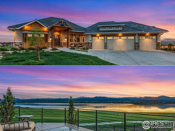 Embrace luxury in this 4-bed, 4-bath TPC Colorado estate with stunning golf course, lake, and mountain views. Step inside to a beautiful pneumatic elevator and open floor plan. Entertain effortlessly in the gourmet kitchen, equipped with an oversized refrigerator, dual ovens, a gas range, and a chic wet bar. The upstairs master suite is a serene retreat, with expansive windows framing rolling fairways, his-and-hers closet, and a spa-like bath with heated floors. The downstairs master offers lake and mountain vistas, a private patio, and a full-size walk-in closet. Outdoors, stadium-style landscaping offers prime views of TPC Colorado's golf tournaments, while the fire pit creates a stylish gathering space. Relax on the pergola-covered hot tub patio, accessible from expansive sun and shade decks or the 4-car garage. Live the TPC Colorado lifestyle with clubhouse access, a resort-style pool with swim-up bar, three reservoirs for boating and fishing, and 8.7 miles of trails. This home sits on just over 1/3 acre and boasts hard to find privacy with plenty of distance between the neighbors. This estate offers year-round luxury and investment potential in Berthoud's thriving market. Schedule a private tour to experience this paradise today!