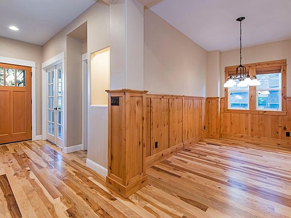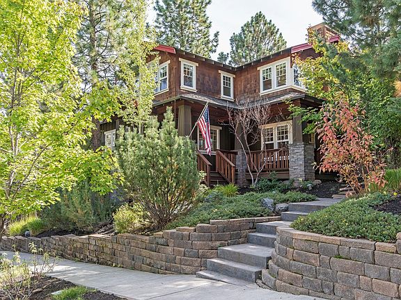 With abundant windows and generous living space, this craftsman NorthWest Crossing home is the ideal layout for large families or those who would like to work from home. Blocks from Compass park, nearby schools and the NWX retail core-it's the perfect location on Bend's westside. Great room accented w/ knotty pine hardwood flooring, natural wood wainscoting & wrapped beams. Living room has gas fireplace, wet bar & built-ins. Center island kitchen design w/ sitting bar, pantry, granite counter tops & stainless appliances. Main level has office + full bath, and upstairs you'll find 3 bedrooms, 2 full baths + a bonus room/4th bedroom. Private master enjoys tree top views, travertine finishes in bathroom, walk-in shower + soaking tub and large walk-in closet. Outside the living space continues with a generous stamped concrete patio, wrap around porch-all enclosed by mature trees and natural landscaping. Hardwood flooring just refinished plus new carpet installed as of Sept 2019.