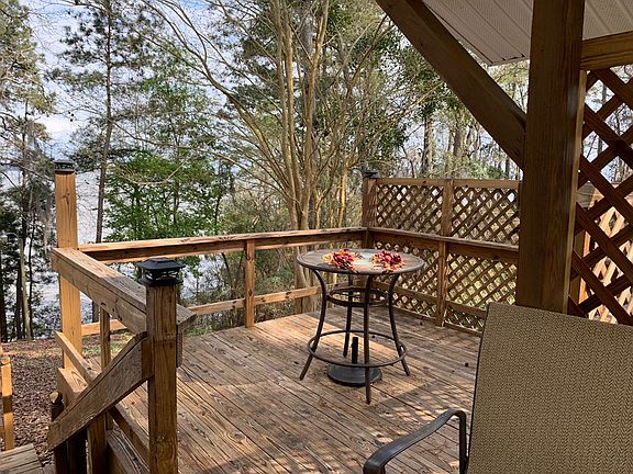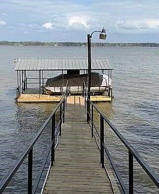 WATERFRONT LAKE EUFAULA!!! fantastic view of the "Big Water" of Lake Eufaula, AL 3 bedrooms, 2 baths. Open floor plan. Tongue and groove cypress walls and ceilings. Hardwood floors. Panoramic view of the lake from the sunroom. Multi level deck. Walkway to the deep water covered boat dock with lift. This home can be purchased fully furnished including the pontoon boat. Move in ready!!!
