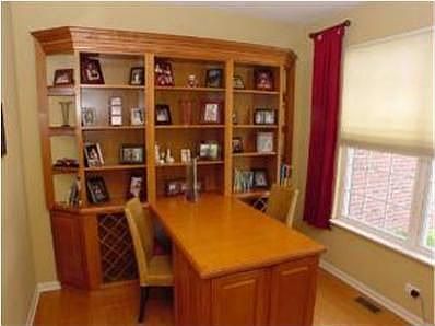Former model home! Island kitchen w/ 42 maple cabinets, breakfast bar, closet pantry, & SS appliances. Family room w/ gas log fireplace & picture frame molding. 1st floor den w/ built-in desk & bookc