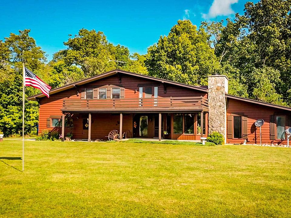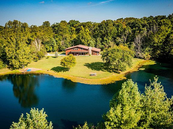 Come see this GORGEOUS piece of paradise! As soon as you come up the long, secluded driveway you will see an incredible, one-of-a-kind property situated on ~14 private acres. This custom built, Swiss-style home overlooks a large pond (installed by the US Corps of Engineers) and pristine woods. The pond is fully-stocked (bass, bluegill, diploid carp) and there is a spacious playground that even includes a custom-built merry-go-round! Explore over 1 mile of perfectly-maintained nature trails wide enough for vehicles and horses. Within the 4-leaf clover trail system youll discover 2 foot bridges, hidden coves, and multiple scenic water views. There is also an accompanying outdoor shed. This property features many species of trees including: paw paw, apple, peach, pear, Florida cypress, Black Forest pine, and more! If you are a nature lover, this is your dream home. The 3,100 sf home is incredibly well built, made from redwood, cedar, and the finest materials available at time of construction. It has been impeccably maintained for 30+ years and has many original finishes and features, making it a true vintage gem. You will love the versatile layout and large rooms, such as the living room on the main floor, which offers soaring ceilings, a massive fireplace, and tall bay windows with lovely pond views. The fireplace features a solid walnut mantle, log box door, and built-in shelves. An all-steel Fireview wood burner has been installed and has a variable blower fan which the seller has used as the primary heat source for many years. The kitchen is in like-new vintage condition and features Amish-built cabinets, original counter tops, Instamatic hot water faucet, built-in bar seating, and a Jenn-Air Bar-B-Que grill and range. Also on the main floor are 2 spacious bedrooms, each with its own walk in closet, patio, and bathroom (with shared shower tub). The 1st floor has a laundry room with lots of cabinetry and another full bath. Upstairs is a loft that looks out over the living room. The primary bedroom is also upstairs and it is so big it could be divided into 2 bedrooms! (If desired, an additional bathroom can be easily added due to plumbing lines running upstairs in the wall.) Off the primary bedroom is an immaculately clean walk-in attic. The 2nd floor also features front and back decks. Centrally located, this home is only 20 mins. to Muncie, and 35 mins. to Marion. Come see one of the most exquisite homes in the state and make it your own paradise.