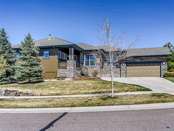 Immaculate & beautiful main floor living in this ranch home with finished lower level. Main floor features hickory flooring throughout, 10' ceilings, crown moldings and fabulous architectural detail. Open floor plan with fireplace in great room; kitchen & nook adjacent to covered deck featuring expansive mountain views. Master bedroom and ensuite featuring heating floor, large, updated walk-in shower & double vanity. Office or 2nd bedroom on main floor adjacent to full bath. Custom drapery & window coverings included. Large laundry with cabinets & closet. Lower level with 9' ceilings and 2 large bedrooms c/w full bath. HOA maintains landscape front & back, exterior water and snow removal. Cherry Creek schools, close to parks, trails , library, Southland's and quick access to DIA.