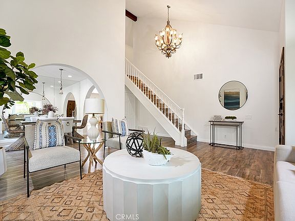Prepare to be dazzled by this exceptional 4-bedroom, 3-bathroom, 3-car garage home in a prime Mission Viejo setting with elegant double wrought iron doors opening into a bright and inviting atmosphere with dramatic two-story ceilings and archways enhancing the dining room, creating a memorable first impression. The huge kitchen is a chef's dream, offering ample space for culinary creations and gatherings, a state of the art Smart refrigerator, stainless steel appliances and opens to an expansive family room, anchored by a focal point fireplace, all while overlooking the lushly landscaped and completely private backyard (NO HOMES BEHIND!). A convenient powder room completes the downstairs. Ascend to the upper level where you'll find four generously sized bedrooms, each offering comfort and style. The primary suite is a true sanctuary, featuring a sumptuous retreat with its own cozy fireplace – the perfect spot to unwind. The luxurious primary ensuite is beautifully bright and offers a dual vanity and a welcoming step-in shower. Modern conveniences and peace of mind are ensured with a new electrical panel featuring two EV charging outlets in the garage, a newer jacuzzi heating unit, new roof tiles, and a newer AC unit. Mission Viejo lifestyle with exclusive membership to gorgeous Lake Mission Viejo, just moments away! Enjoy boat rentals, paddleboard and sailing for leisurely days on the water, attend incredible concerts on the lake, and savor the amazing culinary eateries lining the lake – it's resort-style living at its finest! Low tax rate, award winning schools with fine dining and shopping conveniently close! Don't miss this exceptional opportunity!