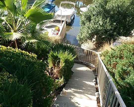 Waterfront single story Ranch style 4B 2B home with one bedroom used as an office Has separate dining/living room and great room open to the kitchen, with French doors open to the patio, great for entertaining. Has a 2- 1/2 car garage (two cars along with a golf cart) Includes boat dock Extra Large driveway with room for boat, or a small RV. Fenced yard, great for kids and dog. Completely landscaped. Corner lot. Must see to appreciate! Located in the East Bay. Bring offers!! Seller willing to negotiate.!
