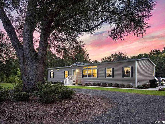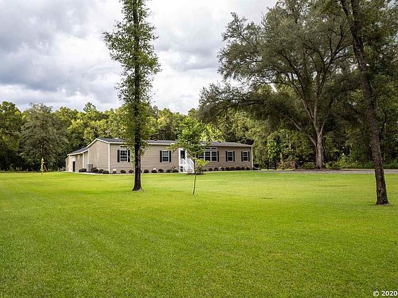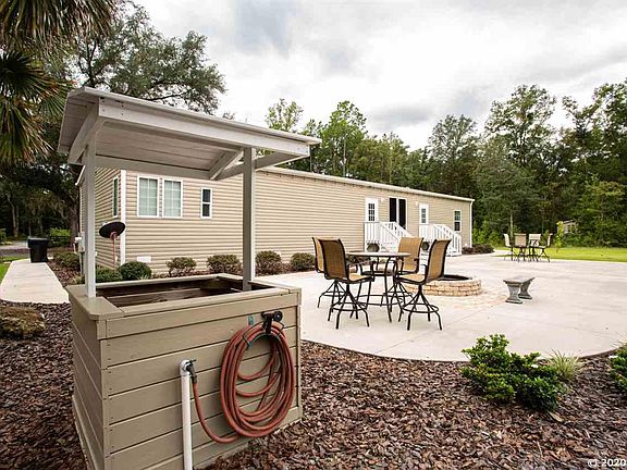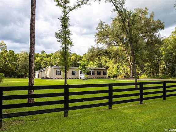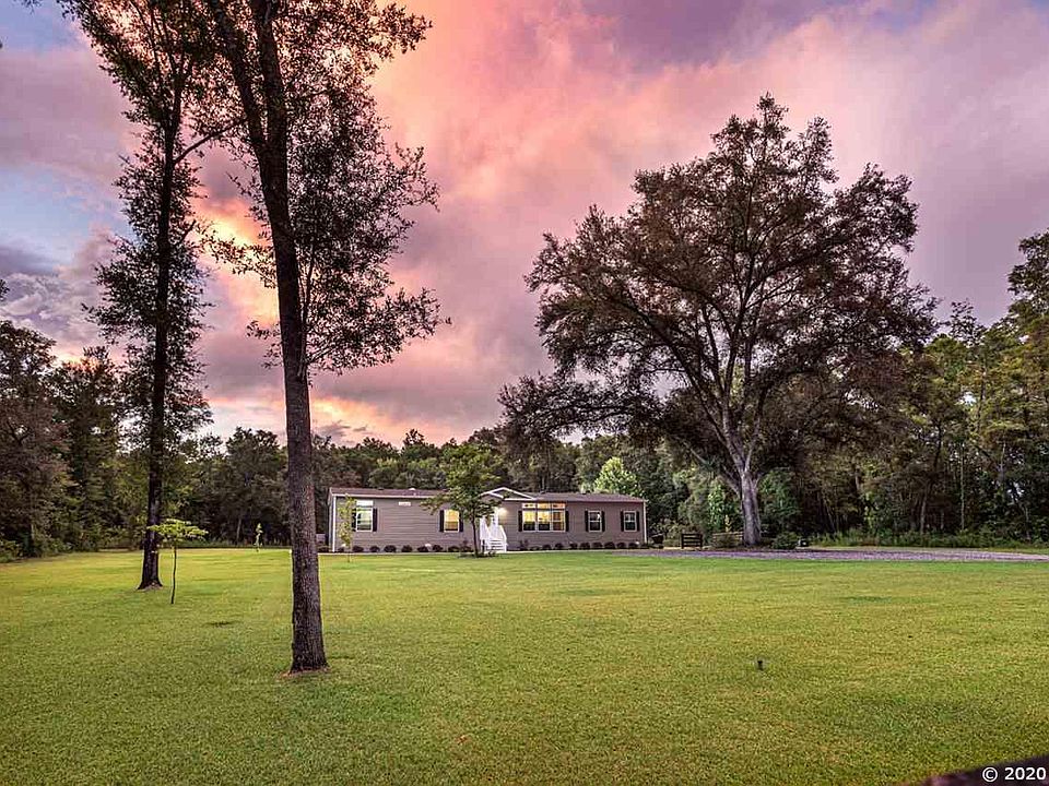 Just outside High Springs FL. This Beautiful, almost new, home nestled in a park like setting on 5 acres: 2 cleared with 3 canopied acres with large oak trees. Beautiful upgraded kitchen with over size fridge, vaulted ceilings, premium light fixtures, and ceiling fans. Sidewalks surround the home and lead to a wonderful outdoor fire pit. This truly is a MUST SEE. House specs are as follows, 2017 custom designed Live Oak home with 2280 sq ft heated and cooled, 3 bed 2 bath; 2 living rooms featuring, 2x6 exterior construction, tape & textured throughout including closets, 9 ft ceilings, low-e windows, wood plank like flooring throughout (no carpet), all rooms are large. Exterior features include full gutters, walk-around sidewalks, large shop: built in 2019 1400 sq ft 12ft eave with vaulted trusses 16ft center power 1/2 bathroom water softener 3 Janus hurricane roll-up doors 2-12x10, 1-10x10 additional 16x40 lean to with 16x16 enclosed storage room commercial-grade irrigation system for yard area 4 board wood fence across front yard with 4x6 posts low maintenance centipede grass milling driveway fire pit pavered area large amount of concrete; pre-planned outdoor area with conduit for power and plumbing future outdoor kitchen