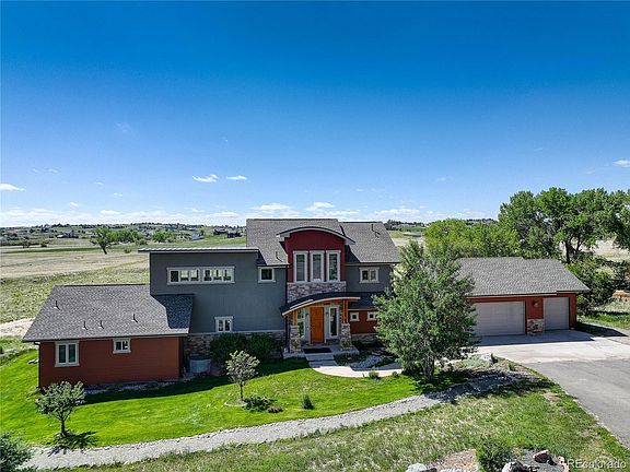 This is your chance to own a piece of paradise! This updated home is situated on just over 5 acres and backs to 164.648 acres of open space owned by HOA in exclusive Elkhorn Ranch. It offers stunning architecture using only the highest quality finishes not to be outdone by the beautiful views. Bring your horses and enjoy country living at its finest. As you enter the home you will immediately notice the stately sunken living room with its new wood flooring and wall of windows overlooking your property with a two-sided fireplace that extends to one of multiple patios. It’s perfect for snuggling together with a glass of wine. The open kitchen is a cook's dream, with stainless appliances, granite counters and more. The luxurious main floor primary suite features a spa-like bathroom with another 2-sided fireplace, large jetted soaking tub and a separate shower. Four additional bedrooms provide plenty of space for family and guests. You'll love all this home has to offer: New Carpet on Upper Level (2022) New Roof, Gutters and Stucco (2021). Wood Flooring in Living Room (2017), New Windows on Main Level (2020) and One New AC Unit (2021), also a Rachio on-line control sprinkler for yard and Waterworks Water Softener a total of over $300,000 in upgrades.
