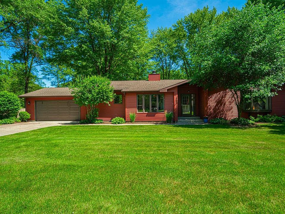 WESTERN ACRES RANCH ON CORNER LOT WITH ATTACHED and DETACHED GARAGE on ALMOST 1 ACRE! A rare find for this well maintained 3 bedrooms/ 3.5 bath home! Entry leads you into the vaulted ceiling Kitchen/ Dining Room Combo with Fireplace and a large front window over looking the front yard. Kitchen has been updated with NEW Corian counter tops, granite sink, glass back splash, and BOSCH cook top and dishwasher. Existing features are Kitchen track lighting and SS appliances! Entry to garage and 1/2 Guest Bath/Laundry Combo completes the front of the house. Great Room has vaulted ceilings, a 2-sided fireplace and sliding glass doors to a 3 Seasons Room with new laminate flooring. East side of the house has a REAR MBR Suite with vaulted ceilings, WI closet, and a 3/4 Bath. There are 2 more Bedrooms (one with hardwood floors and its own FULL bath). Rear yard is fenced in with a HUGE deck. DETACHED 2.5 GAR GARAGE w/heater will make some hobbyist very happy! VIRTUAL TOUR AVAILABLE ON THIS HOME.