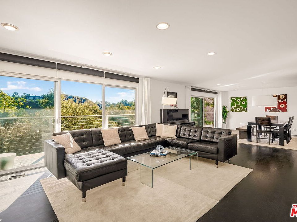 Perched on a quiet cul-de-sac, this serene three-story contemporary residence spans approximately 3,544 square feet and offers 6 bedrooms and 6.5 bathrooms. Thoughtfully designed and filled with natural light, the expansive open-concept living and dining areas flow seamlessly into a sleek eat-in kitchen highlighted by an oversized center island. Walls of glass and sliding doors frame scenic vistas and open to a full-length balcony and a spacious, sun-drenched patio, creating an effortless indoor-outdoor lifestyle. The primary suite serves as a private retreat, featuring its own balcony, a soaking tub, separate shower, dual vanities, and an expansive walk-in closet. All bedrooms are located on the lower levels, each with its own en-suite bathroom, and most enjoy tranquil views. One bedroom and bathroom have been partitioned into a separate guest suite complete with its own kitchen, laundry, and private entrance, offering exceptional flexibility for visitors, extended family, or rental income. Additional highlights include an attached oversized two-car garage and a prime location with convenient access to Beverly Hills, the Valley, Coldwater Canyon, Mulholland Drive, and the City, offering the perfect balance of privacy, views, and connectivity.