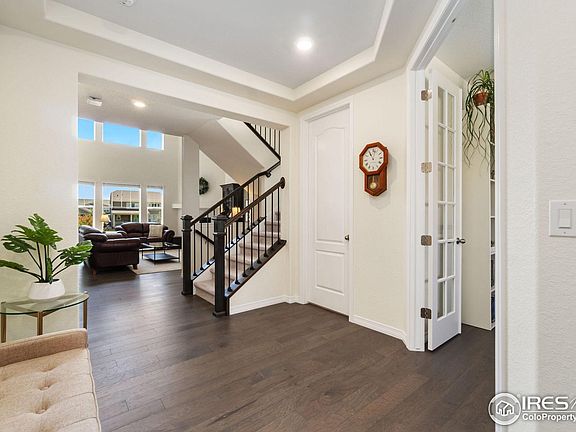 Welcome to this better-than-new home in the Provenance neighborhood! The main floor features beautiful open concept living with a 2-story great room with lovely natural light and a cozy fireplace. Enjoy an oversized island in the kitchen, along with granite counters and stainless steel appliances. An expansive covered deck and patio off the kitchen face East, providing comfortable afternoon shade for outdoor dining and enjoying the Colorado weather year-round. French doors open to a dedicated main-floor office filled with natural light. Upstairs, enjoy your spacious primary suite with a spa-like 5-piece bathroom and 2 separate walk-in closets. Three additional bedrooms upstairs are oversized, one with an ensuite bathroom and 2 that share a jack-and-jill bathroom. Upstairs laundry is the ultimate convenience. The basement is unfinished, with plenty of storage space and ready for you to customize. The 3-car tandem garage has ample space for your vehicles and toys. Front porch and driveway face West, which will help your snow melt away this winter. Professional landscaping completed in 2020 and is now established for you to enjoy with minimal upkeep. Convenient location with a quick commute to Boulder, North Denver, Loveland, and Fort Collins.