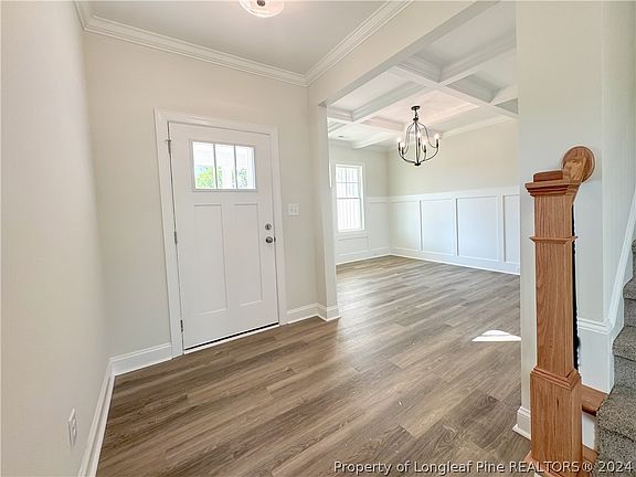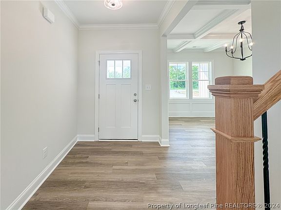 PRESALE: Introducing the Carrabelle by Furr Construction, a stunning 5-bedroom, 3-bathroom retreat in progress. Enter into luxury with a formal dining room featuring coffered ceilings and intricate wainscoting. Flow into the expansive great room, ideal for entertaining. The chef's kitchen boasts granite countertops, double oven, pot filler and stainless steel appliances. Adjacent to the kitchen is a versatile space perfect for a bedroom or home office, with a convenient full bath. The Owner's Suite offers double tray ceilings, a walk-in closet, and a primary bath with a double vanity, garden tub, and separate shower. Upstairs, find a laundry room and three more bedrooms, two sharing a Jack & Jill bath.