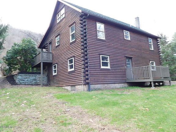 Rustic log cabin with a front porch made for rocking chairs and easy living. Come enjoy the deck or patio when your not relaxing in front of the stone fireplace. Make the loft your bedroom or a reading area. There is plenty of room in the lower level family room where you can stay warm by the coal stove.