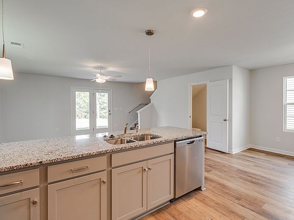 Open layout home! This two-story home comes with three bedrooms and two-and-one-half-bathrooms. Just off the entryway, an eating area leads into the kitchen and great room. Through the garden door, outback, you'll enjoy an extended patio space. Upstairs, the laundry room is conveniently located near the bedrooms, and storage and linen closets are available in the hallway. The vaulted ceiling in the primary bedroom adds a nice touch and is connected to a walk-in closet and a primary bathroom. There are two more bedrooms on this floor, near the second full bathroom.