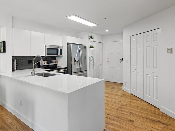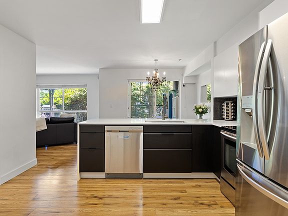 Welcome home to this spacious And bright 2 bed/bath corner unit with your very own oversized, private wrap around patio. Newly renovated, open and functional kitchen with sleek quartz countertops (waterfall finish) and copious amounts of cupboard space. Ensuite laundry. Newer flooring and freshly painted. Thoughtfully designed living area with gas fireplace and huge windows, providing plenty of natural light. Dual sinks in the primary and huge, custom walk in closet. Secure building, fully rain-screened, One storage #2 and parking #91. Pets allowed w/ restrictions 2 pets dogs/cats . Central location, A short walk to schools and transit.
